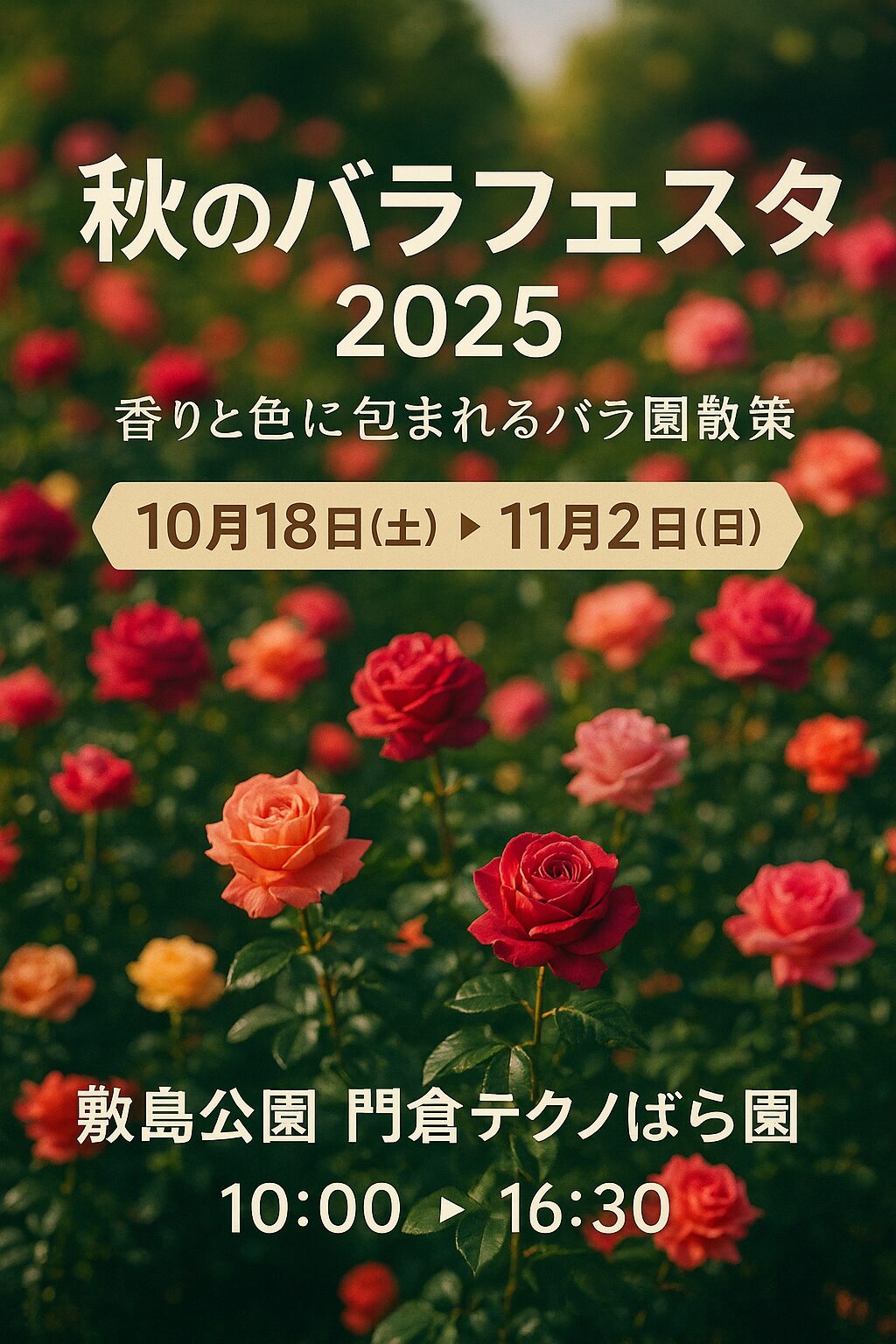 秋の風が心地よいこの季節。まだ週末の予定が決まっていないあなたへ―前橋の敷島公園・門倉テクノばら園で、秋バラのフェスタが開催されます。色鮮やかなバラと香り、音楽や体験イベントも揃った秋ならではのイベントです。 📅イベント基本情報 日... -